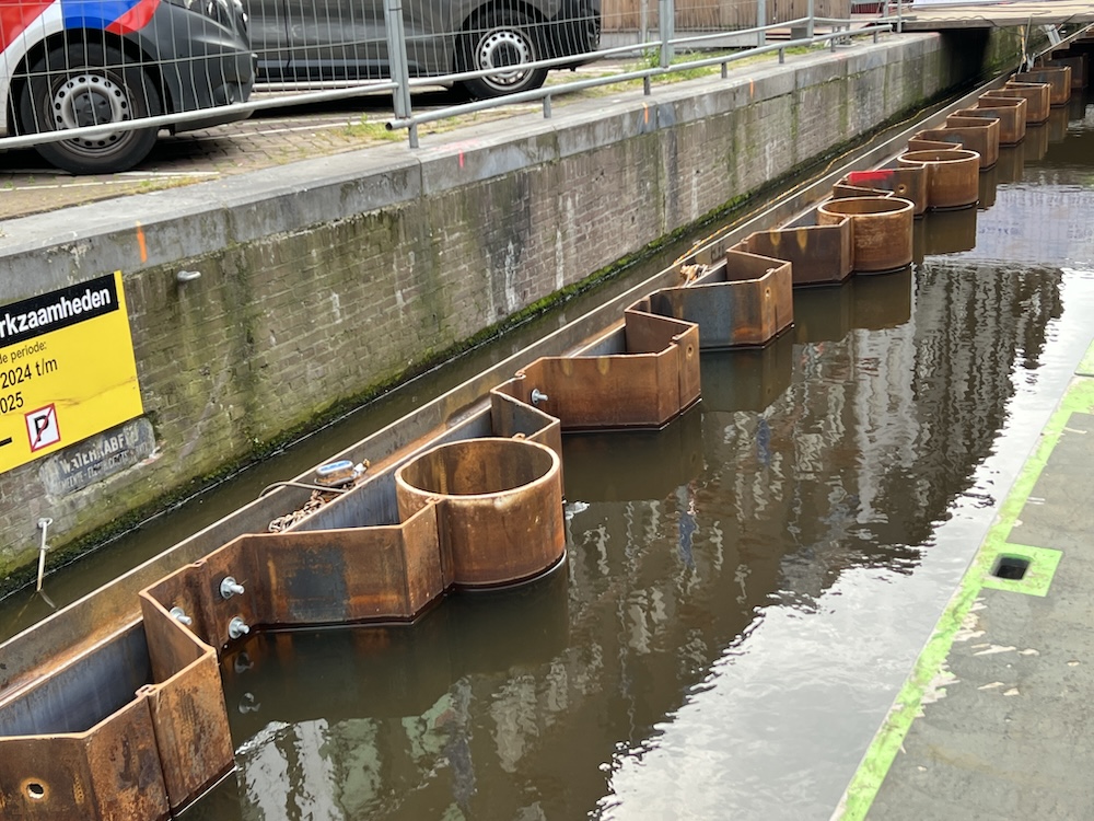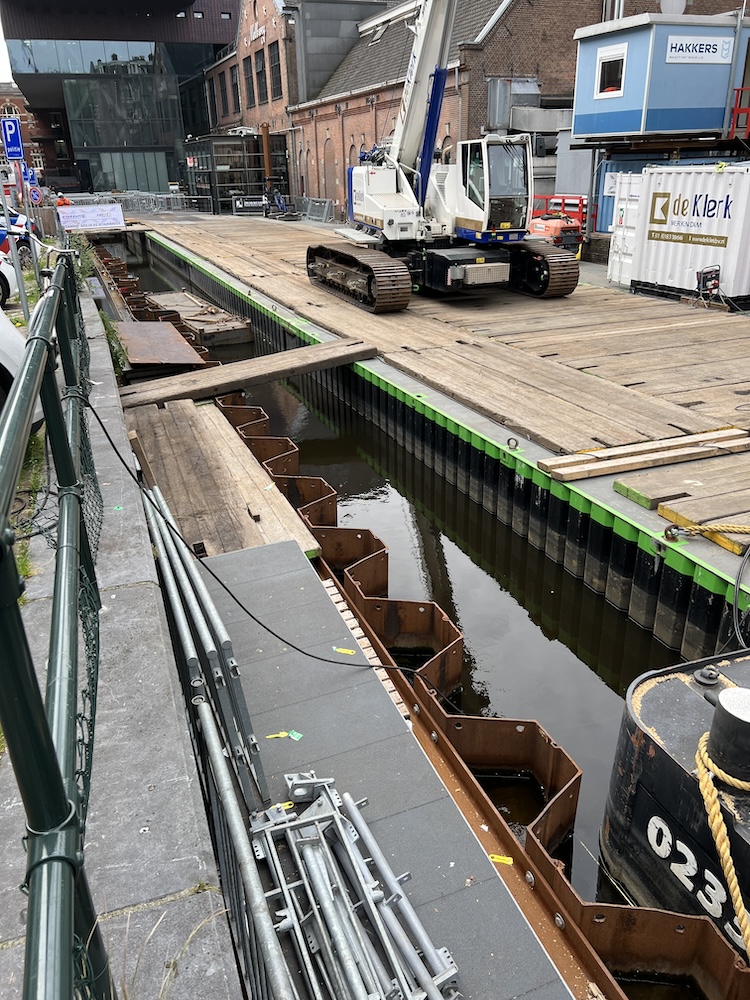 Als onderdeel van de bouw van de fietsvlonder, is het noodzakelijk om eerst de kademuur te versterken, omdat deze in een slechte staat verkeert. Deze versterking wordt uitgevoerd met stalen damwanden die geleverd zijn door Gooimeer.
